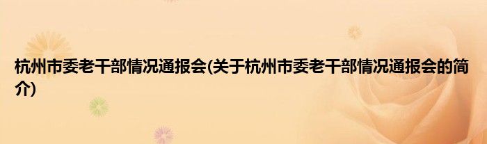 1、 杭州市委老干部情况通报会是杭州市召开的会议。