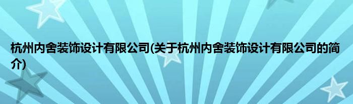 本文关于杭州内舍装饰设计有限公司的简介就讲解完毕,希望对大家有所帮助。