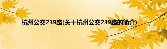 大家好,杭州公交239路,关于杭州公交239路的简介很多人还不知道,现在让我们一起来看看吧!