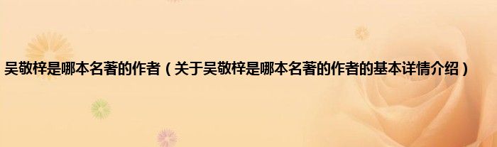 本文关于吴敬梓是哪本名著的作者的基本详情介绍就讲解完毕,希望对大家有所帮助。
