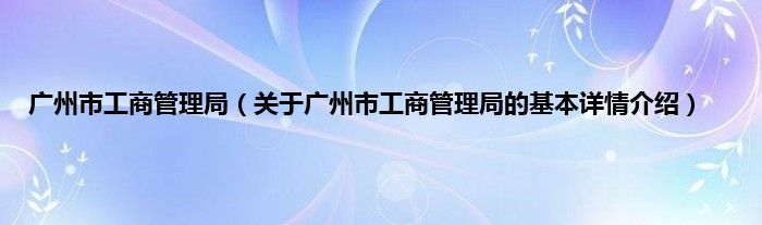 广州市工商管理局(关于广州市工商管理局的基本详情介绍)