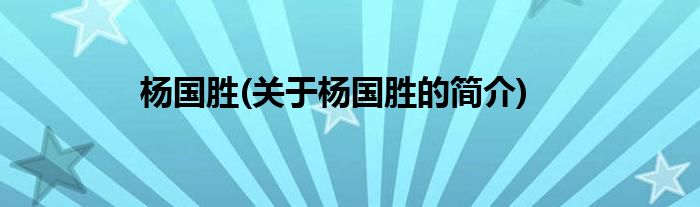 杨国胜(关于杨国胜的简介)