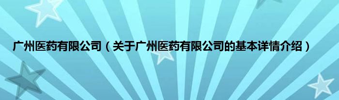 本文关于广州医药有限公司的基本详情介绍就讲解完毕,希望对大家有所帮助。