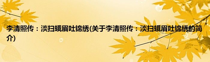 本文关于李清照传:淡扫蛾眉吐锦绣的简介就讲解完毕,希望对大家有所帮助。