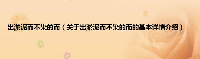 本文关于出淤泥而不染的而的基本详情介绍就讲解完毕,希望对大家有所帮助。