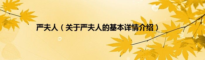 本文关于严夫人的基本详情介绍就讲解完毕,希望对大家有所帮助。