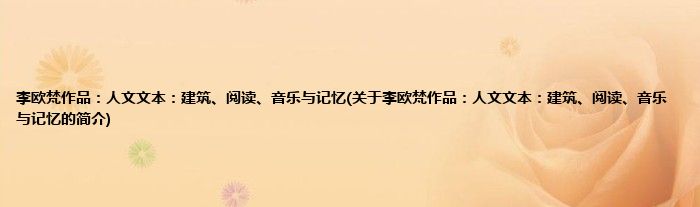 大家好,李欧梵作品:人文文本:建筑、阅读、音乐与记忆,关于李欧梵作品:人文文本:建筑、阅读、音乐与记忆的简介很多人还不知道,现在让我们一起来看看吧!