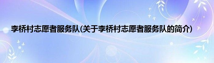 本文关于李桥村志愿者服务队的简介就讲解完毕,希望对大家有所帮助。
