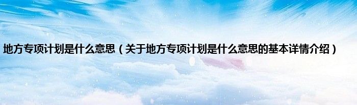地方专项计划是什么意思(关于地方专项计划是什么意思的基本详情介绍)
