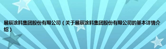 本文关于展辰涂料集团股份有限公司的基本详情介绍就讲解完毕,希望对大家有所帮助。