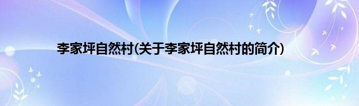 本文关于李家坪自然村的简介就讲解完毕,希望对大家有所帮助。