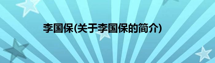 本文关于李国保的简介就讲解完毕,希望对大家有所帮助。
