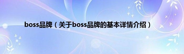 本文关于boss品牌的基本详情介绍就讲解完毕,希望对大家有所帮助。