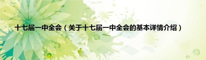本文关于十七届一中全会的基本详情介绍就讲解完毕,希望对大家有所帮助。