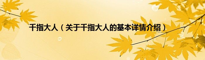 本文关于千指大人的基本详情介绍就讲解完毕,希望对大家有所帮助。