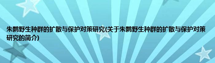 本文关于朱鹮野生种群的扩散与保护对策研究的简介就讲解完毕,希望对大家有所帮助。