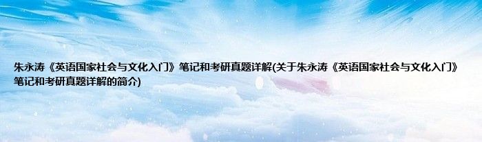 大家好,朱永涛《英语国家社会与文化入门》笔记和考研真题详解,关于朱永涛《英语国家社会与文化入门》笔记和考研真题详解的简介很多人还不知道,现在让我们一起来看看吧!