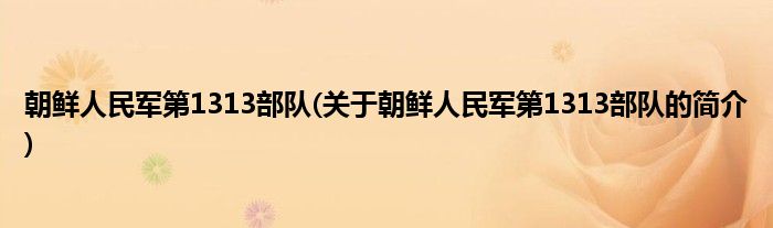 本文关于朝鲜人民军第1313部队的简介就讲解完毕,希望对大家有所帮助。