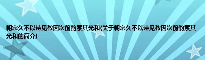 大家好,朝宗久不以诗见教因次前韵索其光和,关于朝宗久不以诗见教因次前韵索其光和的简介很多人还不知道,现在让我们一起来看看吧!