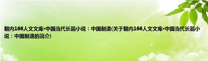 本文关于朝内166人文文库·中国当代长篇小说:中国制造的简介就讲解完毕,希望对大家有所帮助。