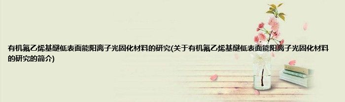 本文关于有机氟乙烯基醚低表面能阳离子光固化材料的研究的简介就讲解完毕,希望对大家有所帮助。