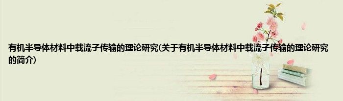 本文关于有机半导体材料中载流子传输的理论研究的简介就讲解完毕,希望对大家有所帮助。