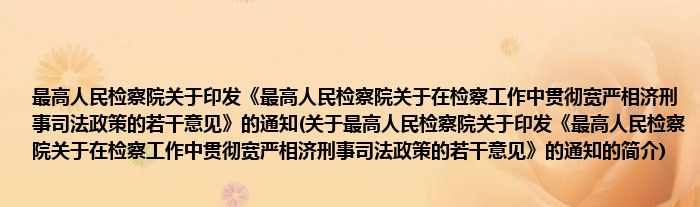 本文关于最高人民检察院关于印发《最高人民检察院关于在检察工作中贯彻宽严相济刑事司法政策的若干意见》的通知的简介就讲解完毕,希望对大家有所帮助。