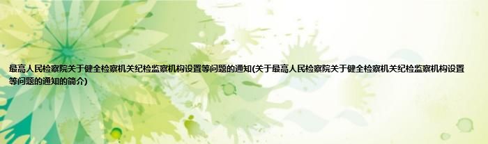 大家好,最高人民检察院关于健全检察机关纪检监察机构设置等问题的通知,关于最高人民检察院关于健全检察机关纪检监察机构设置等问题的通知的简介很多人还不知道,现在让我们一起来看看吧!