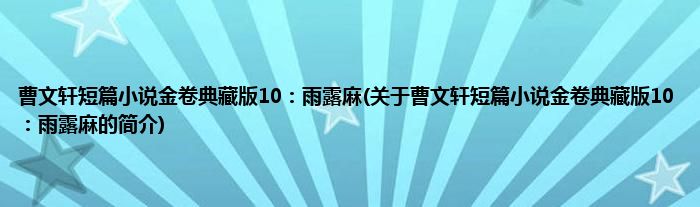 1、 《曹文轩短篇小说金卷典藏版10:雨露麻》是2021年新世纪出版社出版的图书。