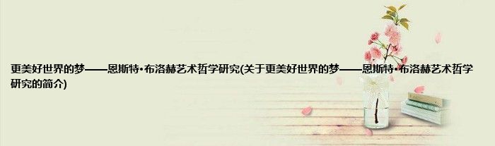 本文关于更美好世界的梦——恩斯特·布洛赫艺术哲学研究的简介就讲解完毕,希望对大家有所帮助。