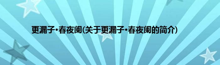 本文关于更漏子·春夜阑的简介就讲解完毕,希望对大家有所帮助。