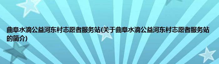 大家好,曲阜水滴公益河东村志愿者服务站,关于曲阜水滴公益河东村志愿者服务站的简介很多人还不知道,现在让我们一起来看看吧!