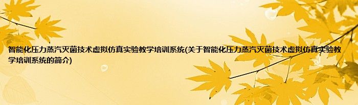 智能化压力蒸汽灭菌技术虚拟仿真实验教学培训系统(关于智能化压力蒸汽灭菌技术虚拟仿真实验教学培训系统的简介)