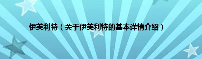 本文关于伊芙利特的基本详情介绍就讲解完毕,希望对大家有所帮助。