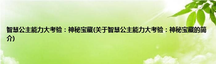 大家好,智慧公主能力大考验:神秘宝藏,关于智慧公主能力大考验:神秘宝藏的简介很多人还不知道,现在让我们一起来看看吧!