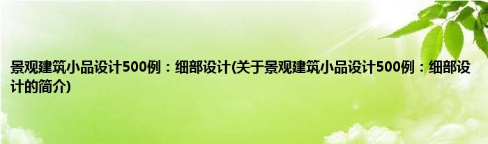 本文关于景观建筑小品设计500例:细部设计的简介就讲解完毕,希望对大家有所帮助。