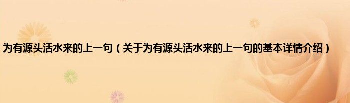 本文关于为有源头活水来的上一句的基本详情介绍就讲解完毕,希望对大家有所帮助。