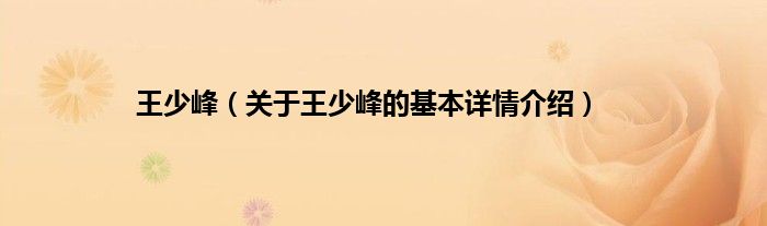 本文关于王少峰的基本详情介绍就讲解完毕,希望对大家有所帮助。