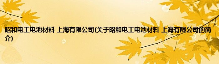 本文关于昭和电工电池材料 上海有限公司的简介就讲解完毕,希望对大家有所帮助。