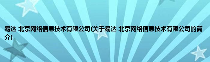 本文关于易达 北京网络信息技术有限公司的简介就讲解完毕,希望对大家有所帮助。