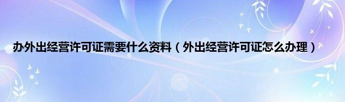 大家好,精选小编来为大家解答以上问题。办外出经营许可证需要什么资料,外出经营许可证怎么办理很多人还不知道,现在让我们一起来看看吧!
