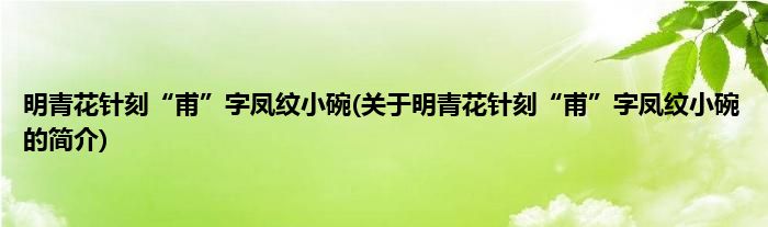 本文关于明青花针刻“甫”字凤纹小碗的简介就讲解完毕,希望对大家有所帮助。
