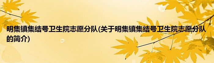 本文关于明集镇集结号卫生院志愿分队的简介就讲解完毕,希望对大家有所帮助。
