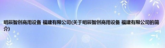 本文关于明辰智创商用设备 福建有限公司的简介就讲解完毕,希望对大家有所帮助。