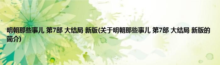 本文关于明朝那些事儿。第7部。大结局 新版的简介就讲解完毕,希望对大家有所帮助。