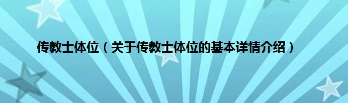 本文关于传教士体位的基本详情介绍就讲解完毕,希望对大家有所帮助。