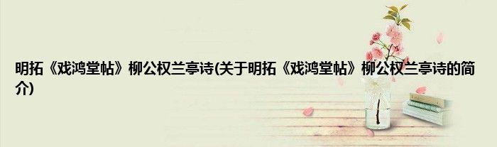 1、 明拓《戏鸿堂帖》柳公权兰亭诗是明代的一部文学作品。