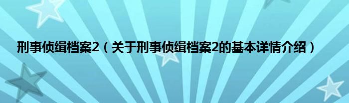 刑事侦缉档案2(关于刑事侦缉档案2的基本详情介绍)