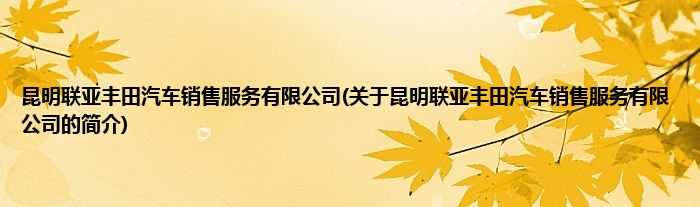 本文关于昆明联亚丰田汽车销售服务有限公司的简介就讲解完毕,希望对大家有所帮助。