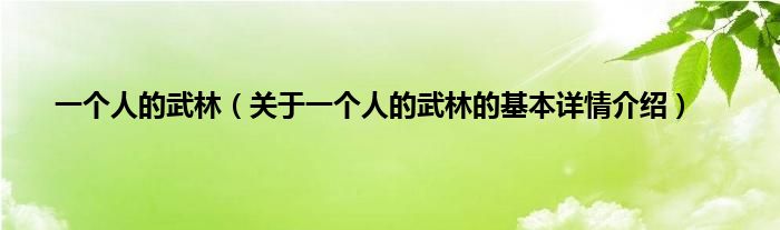 一个人的武林(关于一个人的武林的基本详情介绍)
